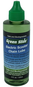 Green Slide Electric Scooter Chain Lube is formulated specifically for electric scooters. Electric scooters have a different chain lube requirement than most other chain-driven vehicles. Most of today's electric scooters do not have a transmission so the chain and sprockets have to do all of the work. The front sprocket spins at a much higher RPM than a bicycle's sprocket. Also the rear wheel sprocket needs to be large, in many cases almost as large as the outside of the rim itself, to properly gear the scooter. This large sprocket runs close to the ground and picks up a lot of dust, dirt, and sand. So the chain lube requirements for an electric scooter are much different from that of any other chain-driven vehicle. We have designed Green Slide specifically for the almost overwhelming demands that an electric scooter places on its chain and lube.